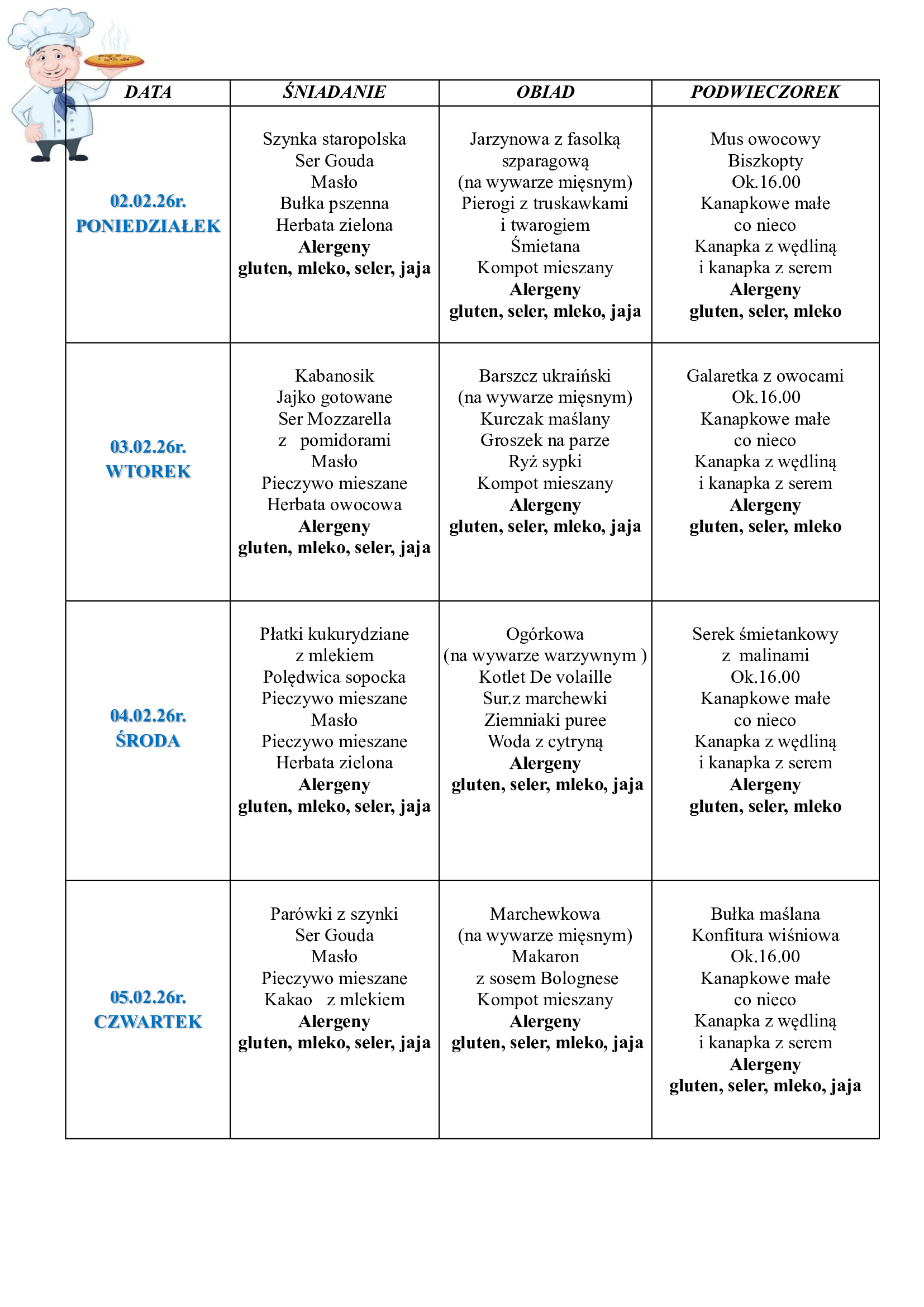 Jadłospis 02-06.02.2026 ...